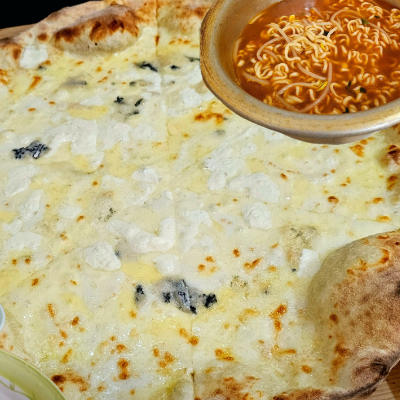고르곤졸라 피자 + 치즈떡볶이 + 라면
