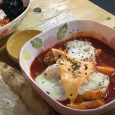 고르곤졸라 피자 +치즈떡볶이+ 김치볶음밥 +라면