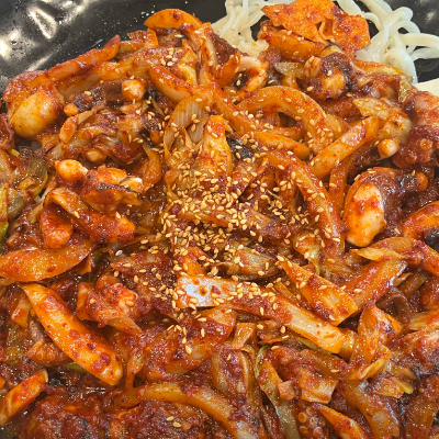 낙지볶음에다가 소주마셨어요 낙지도 큼직하고 양이 많아 배불리 잘먹었어요 매콤함과 쫄깃함이 어우러져 조합이 퍼펙트해요.