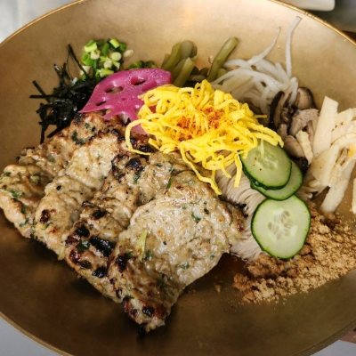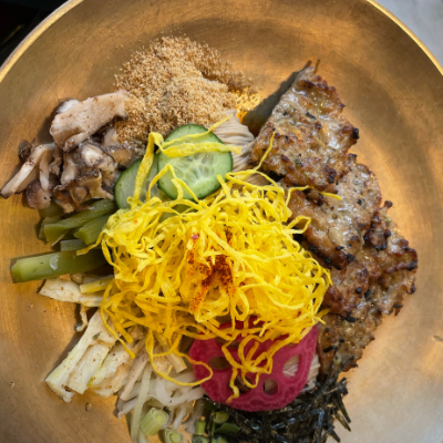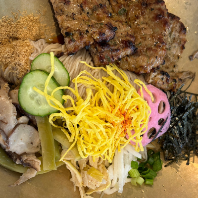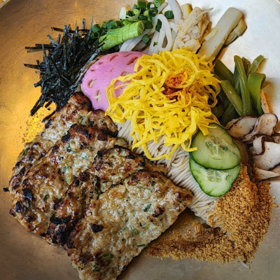담양 지나가다 저녁시간에 들렀는데 국수와 떡갈비와 고명들이 들어가있구 고추기름과 식초에 취향껏넣어 비벼먹는데 오~~맛있네요. 배불리 먹고 왔어요.