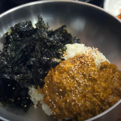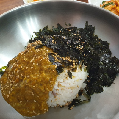 바다향 한가득 밥엔 미더덕 , 참기름 , 깨 , 김 끝 양념장이 없어도 간이 되고 맛이 좋아요.