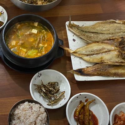 맛이 심심하면서 미더덕의 깊이가 느껴지구요. 미더덕 싫어하시는분들은 생선구이 드시면 됩니다.