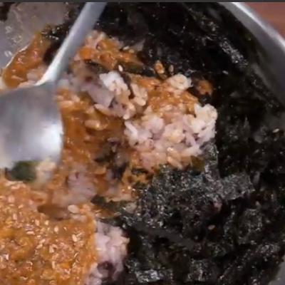 미더덕의 향을 살리기 위해 채소를 넣지 않고 다진 미더덕과 참기름, 깨소금, 김가루만 넣어 주는데 미더덕은 치대듯이 쓱쓱 비벼주어야 더 맛이 좋습니다.