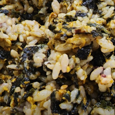 밥알 사이사이에 잘 섞인 미더덕 속살의 고소하고 향긋한 향이 진하긴 했지만, 부담스럽지 않고 부드러워요.