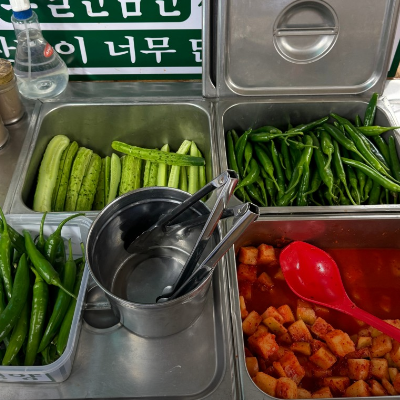 오랜만에 방문했어요~ 고추장 맛이 좀 볌한 느낌이에요. 역시 오이와 고추는 연해서 넘 맛있어요.