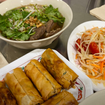 고기들이 잡내 하나도 안 나고 야채나 재료들이 다 신선했습니다 면 대신 밥으로도 변경 가능해요. 소이뽀삐아 속 안에 내용물이 알차고 쌀국수 조합 너무 좋았습니다.