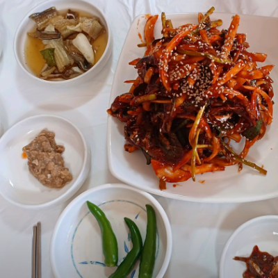 여기 멸치회무침이 신기허게도 하나도 안비리고 너무 맛있어요. 멸치회라 좀 비릴거 각오하고 시켰는데 하나도 안비려요.