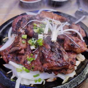 돼지갈비는 2인이상부터 주문가능하고 담백한 돼지구이맛입니다.