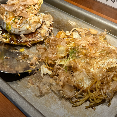 성인 둘이 오코노미야키하나 야키소바 하나 시키고 오코노미야키 한조각 남기고 다 먹었어요.