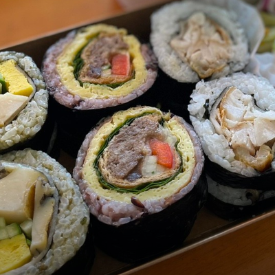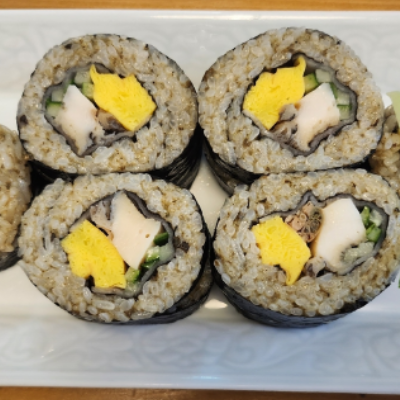 다양하게 맛볼수 있는 건강하고 대접받는 느낌인 이름처럼 명품김밥입니다. 옥돔김밥 짭조름에 밥과 잘어울리고 전복김밥은 고소한맛이 일품입니다.