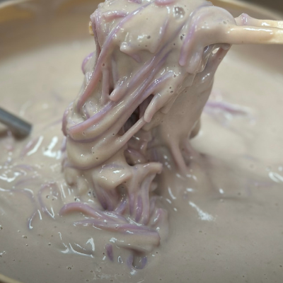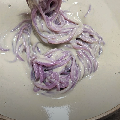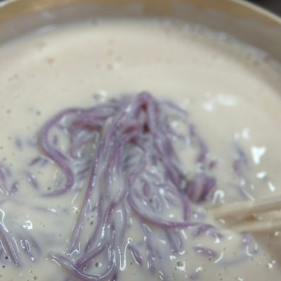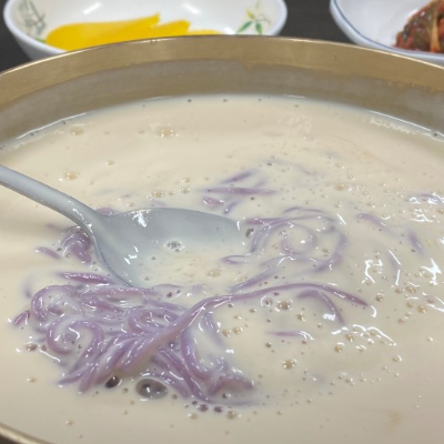 콩국이 진하고 고소하고 자색고구마 쌀면을 사용해서 건강에 더 좋아요.