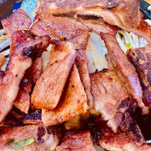 돼지갈비는 2인이상부터 주문가능하고 담백한 돼지구이맛입니다.