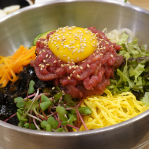 육회는 살짝 맵콤한 양념이 되어있어서 맛있게 먹었어요.