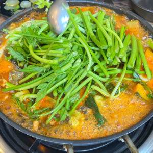 더욱 시원한 국물을 위해 참게 추가해서 끓였어요.