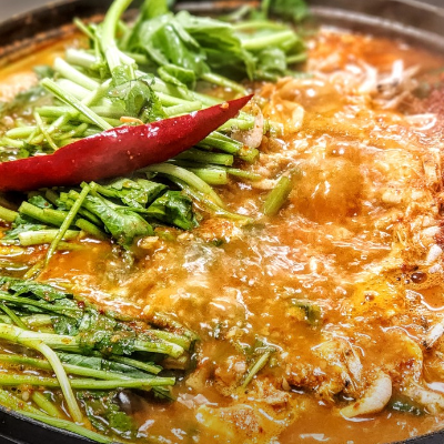 인공조미료를 쓰지 않아 자극적이지 않고 건강한 매운탕입니다. 들어있는 민물고기도 잡내 하나도 없이 맛있고 통통한 새우와 참게가 들어 있어 국물도 끝내주더라구요.