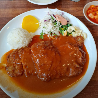 어릴적 추억이 있어서 종종 찾곤합니다. 달한 소스에 큼지막한 돈까스입니다.
