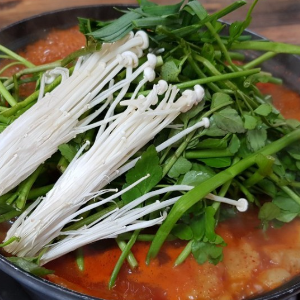 쫄깃한 팽이버섯과 싱싱한 미나리 야채와 먹으니 더 맛있네요.