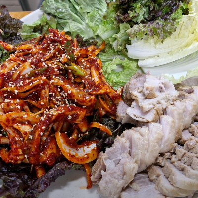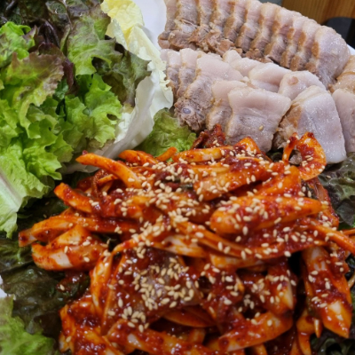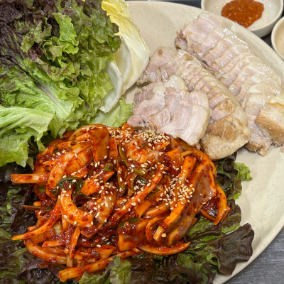 오징어가 부드럽고 보쌈이 촉촉해서 너무 잘어울렸습니다. 보쌈이랑 오징어랑 같이 쌈싸먹으니 식감도 살면서 맛이 너무 잘 어울렸습니다.