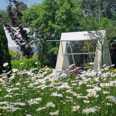 주변에 피어있는 꽃을 보며 담소를 나눌 수 있도록 준비된 야외공간, 산책을 할 수 있도록 잘 마련되어 있네요.