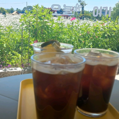 샤스타데이지 절정일때 잘찾은것 같아요 하늘이 좀 아쉬웠지만 꽃밭 너무 예뻤답니다. 음료맛도 좋아요.