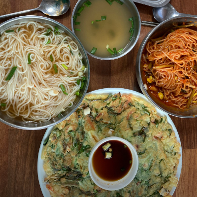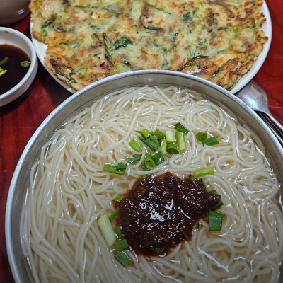 양도 많고 반찬도 맛있었습니다. 파전 진짜 바삭해서 꼭 추천입니다. 국수맛은 최고 였어요.