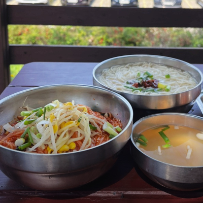 혼자라서 멸치육수가 나오는 열무비빔국수 먹었습니다. 뷰도 좋고 맛도 좋았습니다.