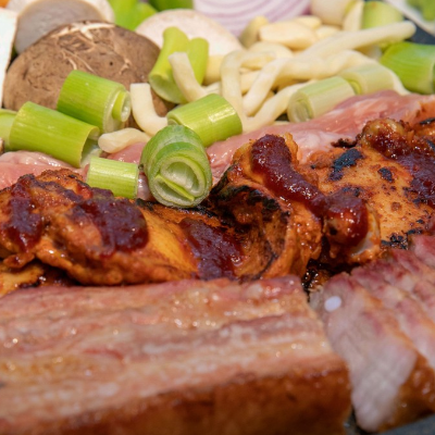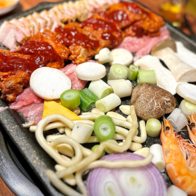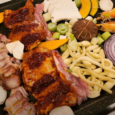 항아리바비큐세트 시켜먹었는데 바비큐, 닭갈비, 꼬꼬살, 새우, 묵사발 다양하게 나와서 너무 좋았어요.