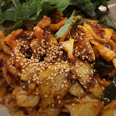 주꾸미는 불맛이 느껴졌고 색깔에 비해 간도 세지 않고 많이 맵지 않아서 맛있었어요.