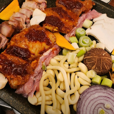 항아리바비큐 맛있어요. 닭갈비는 살짝 매워요. 사장님이 생일축하 음악 틀어주시는데 유쾌하시네요.