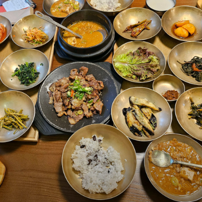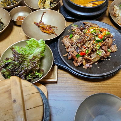들밥정식과 숮불고기 먹구 왔어요 가지튀김을 비롯 반찬들이 정말 맛있구요 샐프바가 있어서 더 좋고 편해요.