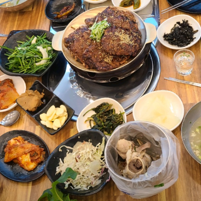떡갈비와 뼈국이 너무 맛있었어요 반찬도 깔끔했어요.