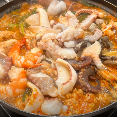 엄청 국물이 깔끔하면서 엄청 깊은 맛입니다. 타이거 새우, 문어, 오징어, 곤이, 명란, 홍합, 소라, 전복, 미더덕 종류가 너무너무 많았어요.