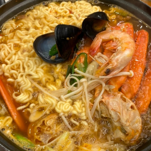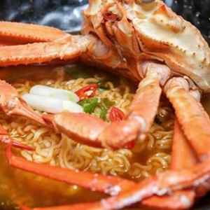 찜 시키면 된장 베이스의 탕을 주시는데 거기에 라면 사리랑 남은 대게 다리 넣어서 먹으면 돼요.