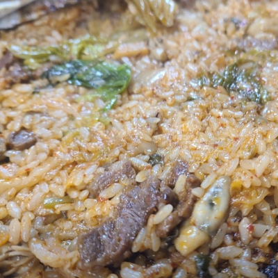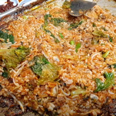 여긴 양구이가 유명하고, 굴밥이 유명한 곳이라고 했어요. 고기 먹은후에 철판에 김치와 밥과 굴을 넣어 볶아주시는거랍니다.