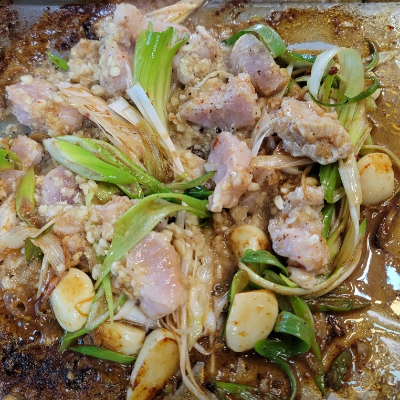 철판 위에 파도 듬뿍 올려서 이모님이 볶아주고 구워주십니다. 조금만 오래 구우면 조금 질기고 살짝 익었을 때 바로 먹어야 부드럽고 맛이 납니다.