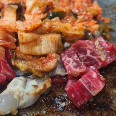 여긴 양구이가 유명하고, 굴밥이 유명한 곳이라고 했어요. 고기 먹은후에 철판에 김치와 밥과 굴을 넣어 볶아주시는거랍니다.