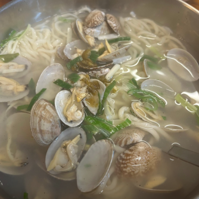막걸리 한입 했는데 게눈감추듯 호로록 순삭했어요. 조개 칼국수도 추가로 시켜서 먹었는데 국물이 진짜 짱이였어요.