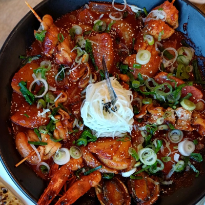 해산물도 푸짐하게 들어있고 살아있는 전복이 4개나 들어있어요. 아이들 줄 고등어구이도있어서 아이와 함께 즐기기 좋은 곳이예요.