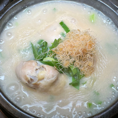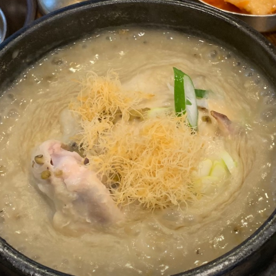 깔끔하고 뽀얀 국물의 녹두삼계탕은 고소하면서 깊 고 진한 맛이 일품이에요.