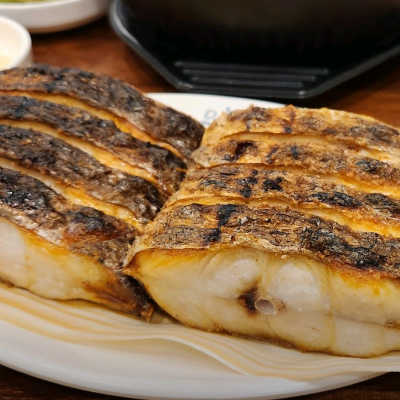이렇게 두툼한 갈치는 처음 먹어봐요. 정말 맛있고 갈치구이 바삭하게 잘 구워져서 나와요.