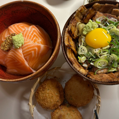 현지 일식 맛 그대로였어요. 사케동 소스도 굉장히 찐하게 달콤 짭쪼롬한데 연어도 신선하게 잘 녹고 멘타이코동도 맛있어요.