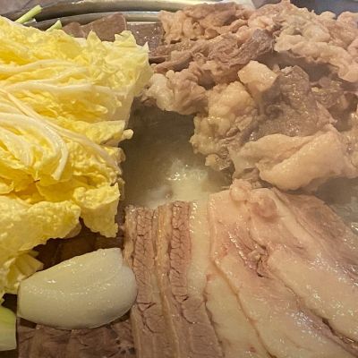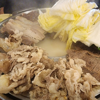 저번에 왔을 때 식사 먹었고 이번엔 유명한 수육전골 주문해봤는데 같은 국물이라도 저는 수육전골이 더 만족스러웠어요.