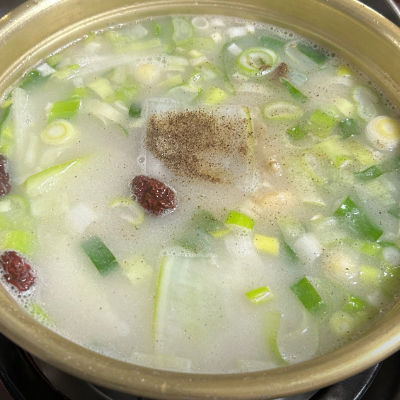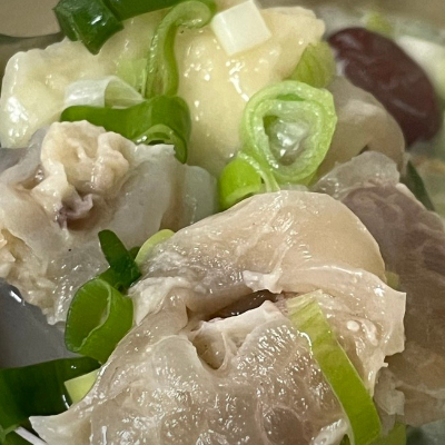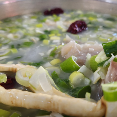 스지탕에는 스지, 수제비, 파, 대추가 들어있답니다. 수제비는 추가가 가능한 걸로 알고 있는데, 간혹 수제비가 떨어졌다고 하시는 날도 있더라고요.