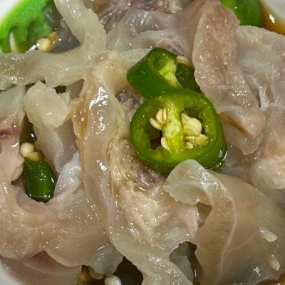 콜라겐 덩어리로 맛은 정말 도가니와 비슷해요. 각종 칼슘과 콜라겐 및 콘드리이친 등의 성분이라고 하네요.