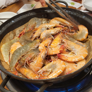 천일염에 열을 가하여 살아있는 새우에 자연스럽게 간이 스며들게 조리하는 대중적인 새우구이입니다.
