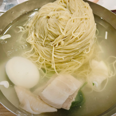 슴슴한 육수의 평양냉면! 학동역 근처의 진미평양냉면와 맛이 거의 비슷함!! 웨이팅이 싫다면 여길 추천합니다.
