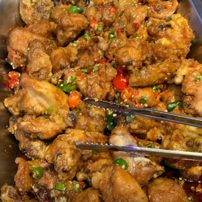 타코야끼도 갓 만들었는지 뜨끈뜨끈하고 흑임자 치킨도 정말 맛있었어요. 유자치킨이 나오는 날도 있다더라고요.
