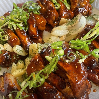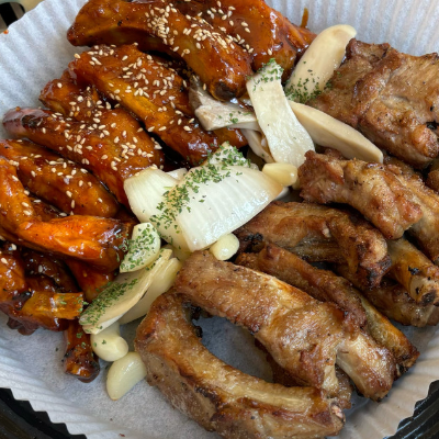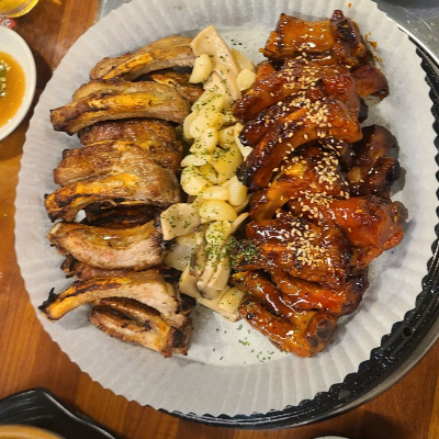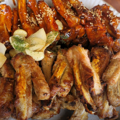 건강하게 꾸지뽕뿌리로 숙성해서 잡내없고 고소하니 맛있어요. 소금은 담백~바베큐는 맵달~하니 반반 강추드립니다.