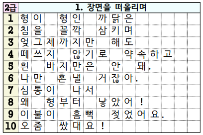 초등2학년 2학기 받아쓰기 급수표는 이렇게 1급부터 12급까지 있습니다.