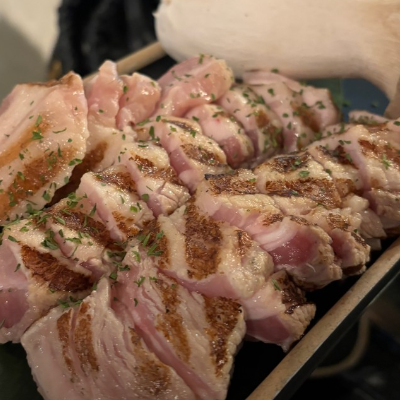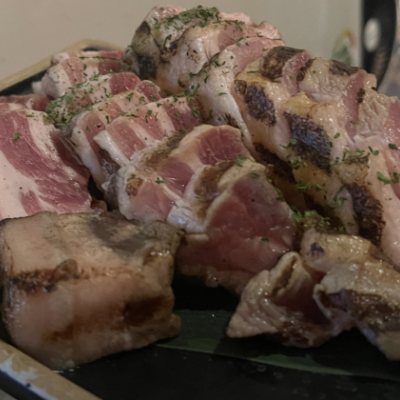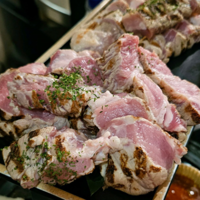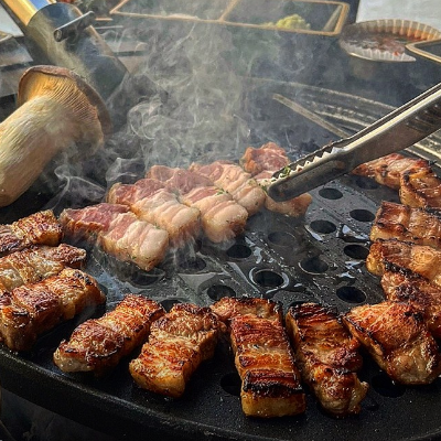 ‘세계 3대 돼지’ 듀록을 죽통, 숯불 초벌하여 불맛과 풍미를 상승시킨 듀록삼겹살 목살이 소개됩니다.